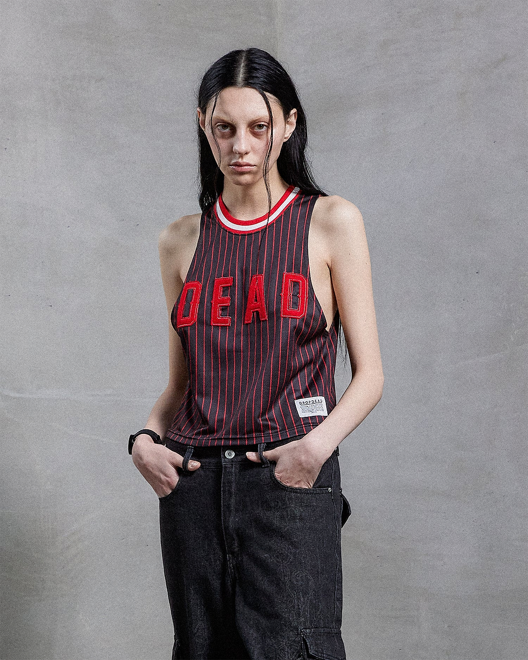 - Jersey vest with pin stripe and cropped hem